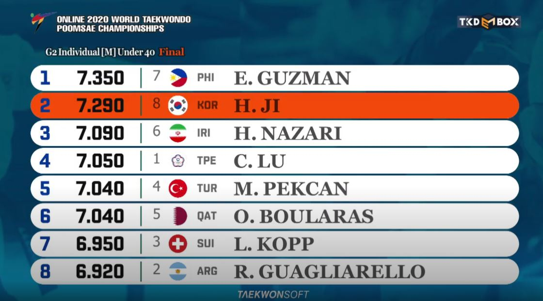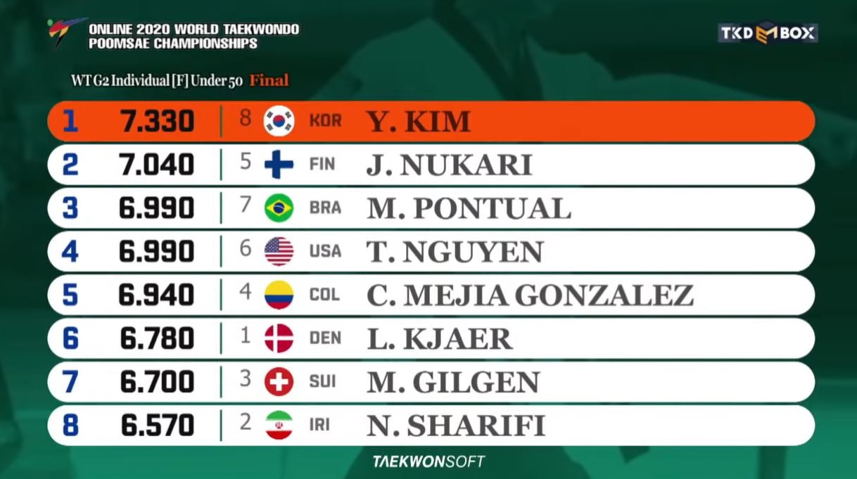Results Finale Round Online 2020 World Taekwondo Poomsae Championships